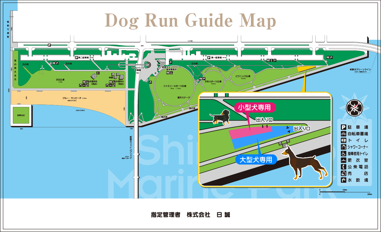 - このドッグランは指定管理者 ㈱日誠が管理を行なっております。これらの管理上必要な指示にはどなた様に限らず従ってください。
